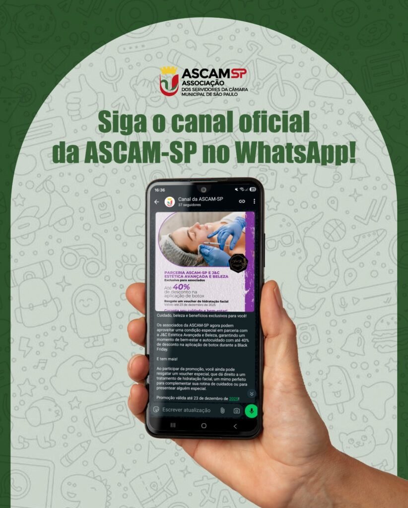 A ASCAM-SP acaba de lançar um canal oficial no WhatsApp, criado especialmente para manter os associados ainda mais próximos e bem informados!