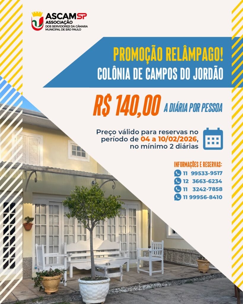 Entre os dias 04 e 10 de fevereiro de 2026, a Colônia de Férias de Campos do Jordão operará com uma tarifa promocional imperdível.