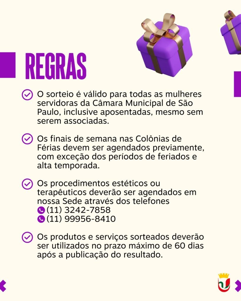 Em celebração ao Dia Internacional da Mulher, a ASCAM-SP reafirma seu compromisso com a valorização e o bem-estar de todas as servidoras públicas da Câmara Municipal de São Paulo. Para marcar esta data tão significativa, preparamos um sorteio exclusivo com prêmios que promovem momentos de lazer, cuidado e relaxamento.