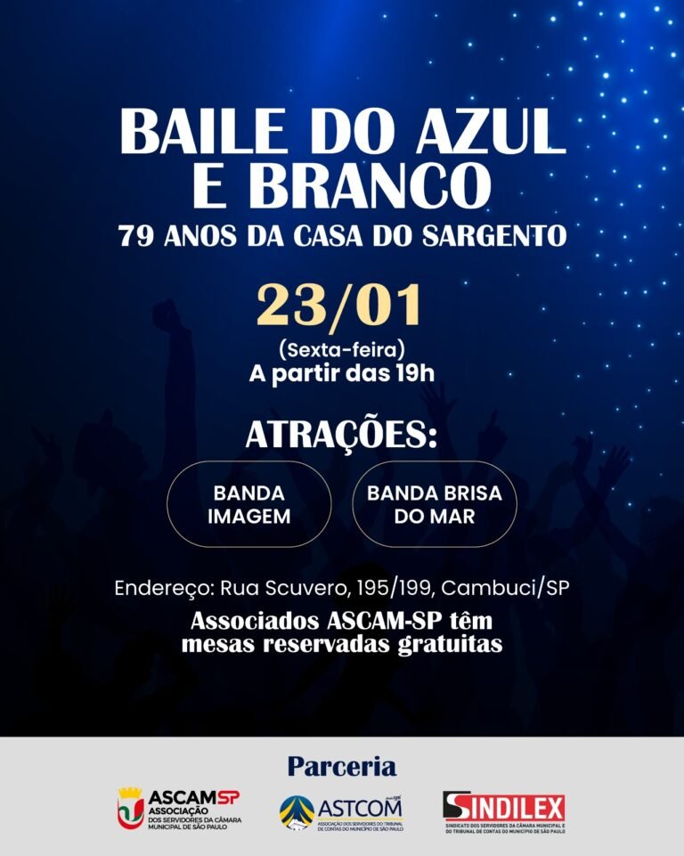 O tradicional Baile do Azul e Branco está chegando para celebrar os 79 anos da Casa do Sargento, e a ASCAM-SP preparou um benefício exclusivo