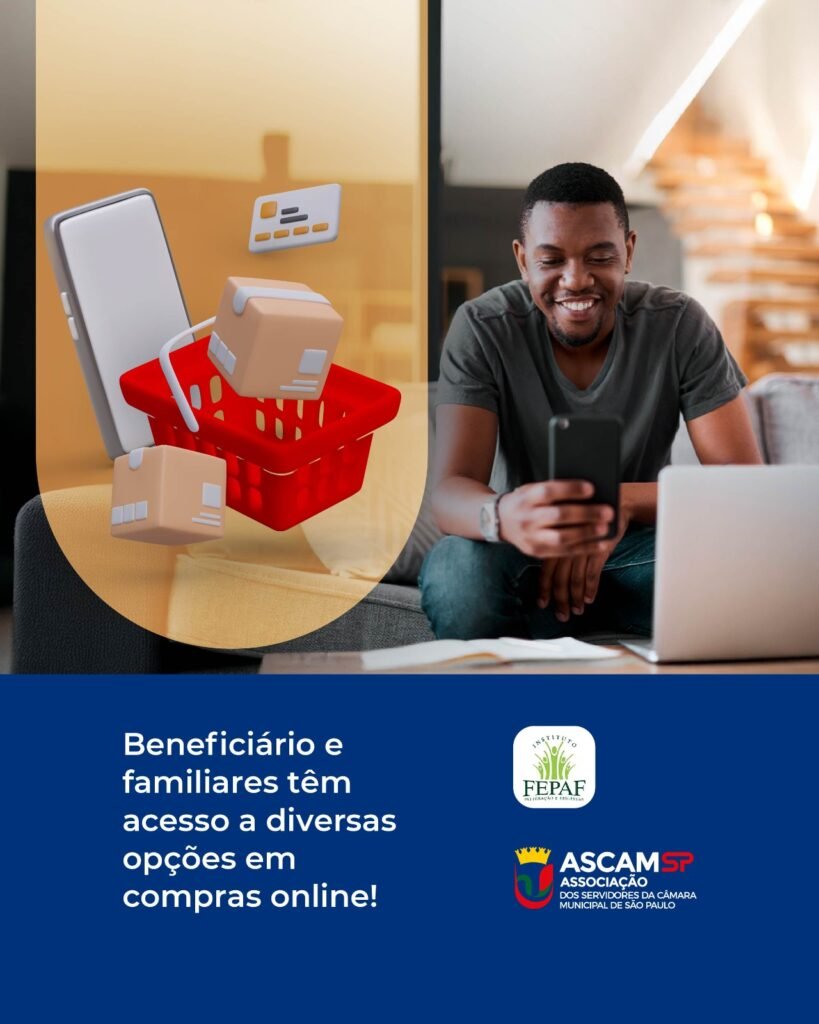 Os convênios em compras online são válidos para beneficiários e seus familiares, abrangendo desde vestuário e esportes até aluguel de veículos e joalheria.